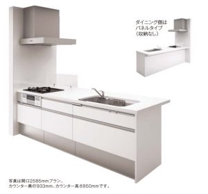 定価キッチン部約93万円(税抜き)、カップボード部約53万円(税抜き)